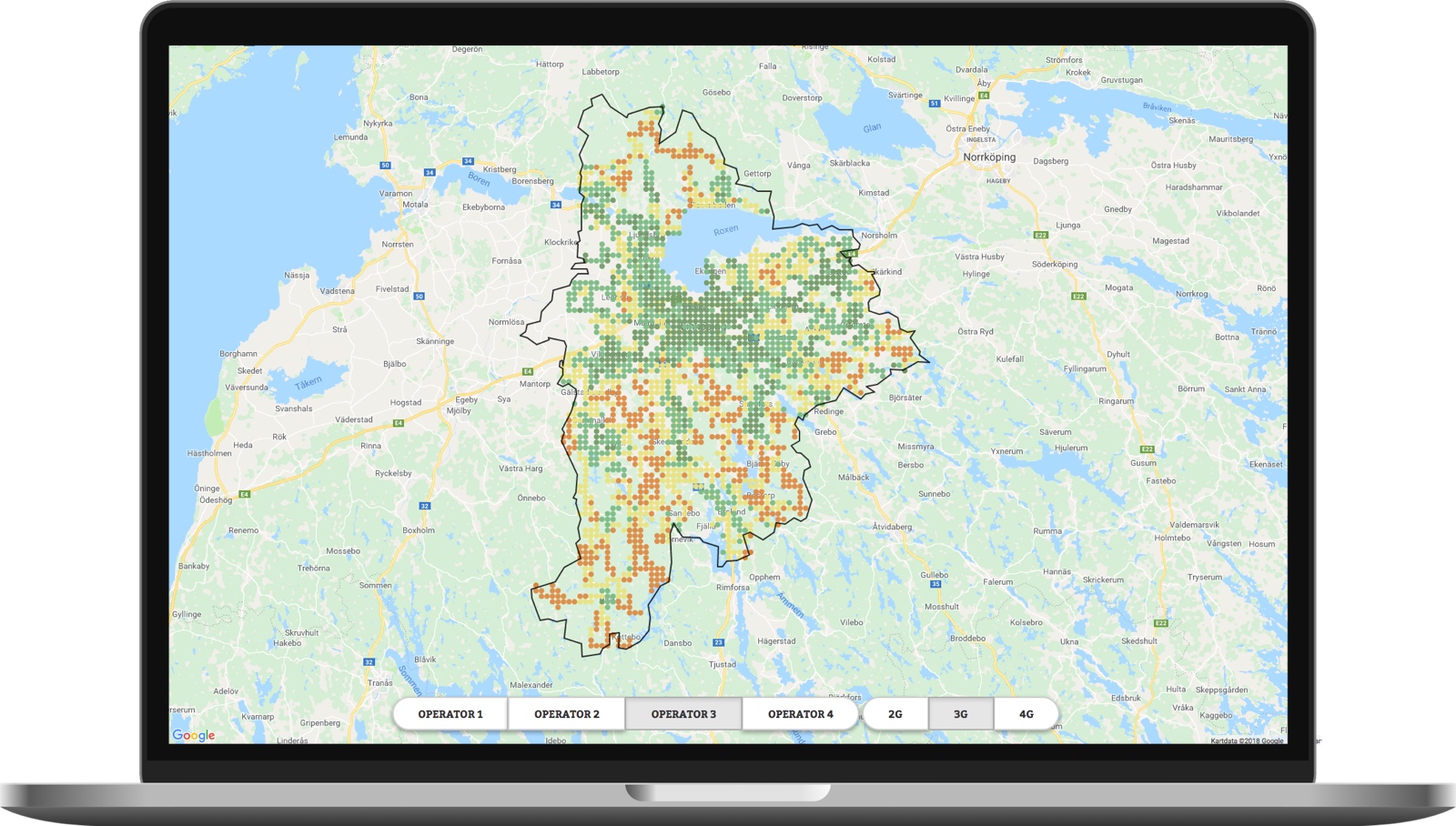 Notre solution est développée pour être conviviale, sa conception visuelle permet de personnaliser la présentation des résultats sur le portail client. Les cartes possèdent des codes couleurs simples et des options pour les différentes techniques, prestataires de services, une information générale ou plus détaillée et différentes périodes de temps – avec notre solution, les clients peuvent facilement trouver des réponses à leurs questions sur la couverture mobile !